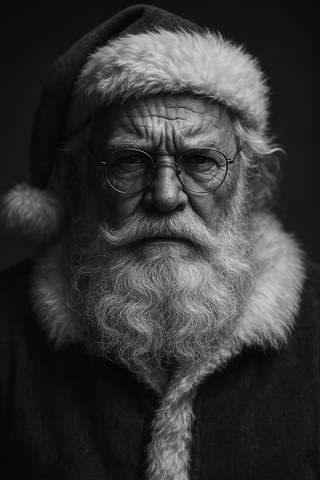 Black and White Santa Claus Portrait Christmas 8K Mobile Wallpaper